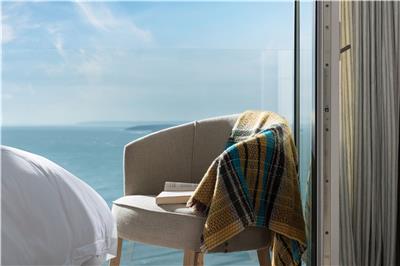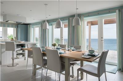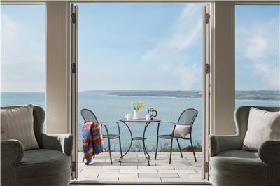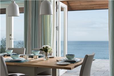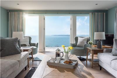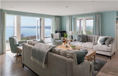 Step outside onto the expansive stone terrace and prepare to be wowed. With 180-degree panoramic views stretching across to Carne Beach and along the Roseland coastline, this is the perfect spot for al fresco dining, sun-soaked afternoons on loungers, or simply soaking up the scenery.
